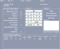 The veterinary doctor maintains contact with the handle and horse for a prescribed period of time to obtain an assessment of the heart rate within the parameters for that particular race, usually 64 beats per minute. Once satisfied that the heart rate is comfortably and consistently within the prescribed range in the specified time, the sensor handle is removed and the rate recorded. If the heart rate is outside the required values, if appropriate the horse is asked to represent within a period of time.